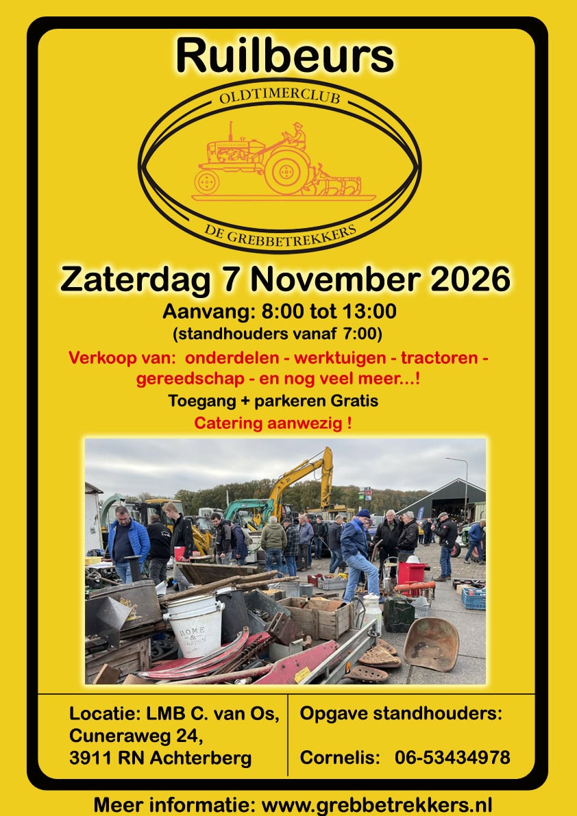 Zaterdag 7 November organiseert Oldtimerclub De Grebbetrekkers een Ruilbeurs.